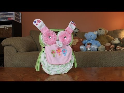 Just a quick and easy video on how to make an Owl Diaper Cake. Here is a link to my new website! http://thomscrafts.com/blog/ Here is a link to the Owl Diaper Cake write up on the Website. Here you can find a list of items used to build the Owl Diaper Cake.