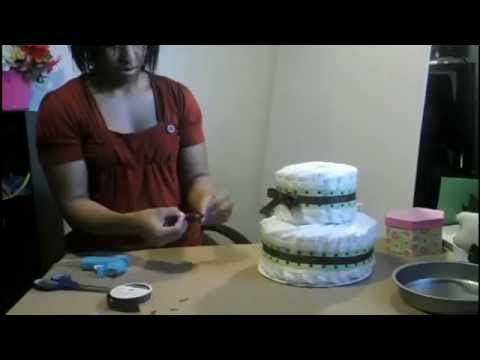 Find me at www.chicbabycakes.com A sped up video of me making my Green Frog Diaper Cake. You will need: about 50 diapers, different sizes of ribbon, stuffed animal, decor of your choice, 2 large rubber bands, paper towel tube, glue gun, and scissors.