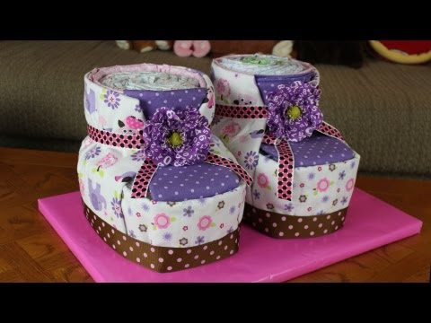 My New Idea, Giant Baby Bootie Diaper Cakes! Its another fun gift idea you can make for the next baby Shower you may go to. Thank you so much for watching! List of materials to make Two Baby Booties.