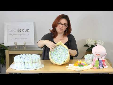I've always wanted to know how to make a diaper cake. They're so cute and fun, and it seems that you can included just about any sort of baby gift when you make your own diaper cake!