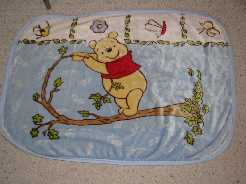 Print is 100% Cotton-Winnie the Pooh is Polyester Fleece -Fiber Fill is Polyester. I take pride in all of my products and would love to keep them all! If Needed I like to wash my linens in Dreft Baby Laundry Soap. | eBay!